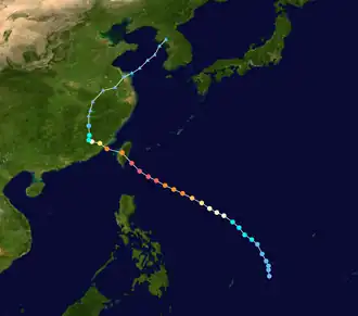 | Kai-tak (Edeng) | July 3 – 10 | Strong typhoon | 140 km/h (85 mph) | 960 hPa (28.35 inHg) | Philippines, Taiwan, East China, Korea | Unknown | 16 | |