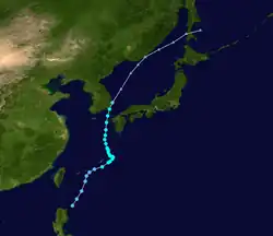 On July 2, a low pressure area formed north west of the Philippines and became a tropical depression on July 3 and started to drift northward, becoming a storm on the 5th and a typhoon on the 6th. Kai-tak continued northward, hitting Taiwan on the 9th. Kai-tak dissipated on the 11th over the Yellow Sea. It was named after Hong Kong's old international airport, Kai Tak Airport.