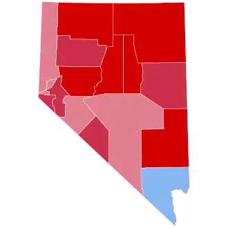 Nevada was won by Texas Governor George W. Bush, who won the state with 49.52% of the vote over Al Gore, who took 45.98%. Bush won every county except Clark County, which is home of Las Vegas. Bush also won Nevada's 2nd congressional district, as Gore won Nevada's 1st congressional district. Also, Ralph Nader got over 2% of the vote.[1] This was also the most recent presidential election (while also being the only time since 1976, and the second time since 1908) in which Nevada did not side with the winner of the popular vote. Nevada was one of many states decided by close margins; had Gore won the Silver State's four electoral votes, the election would have gone his way.