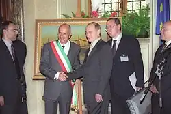 Gabriele Albertini welcoming Russian President Vladimir Putin during his trip to Milan on 6 June 2000