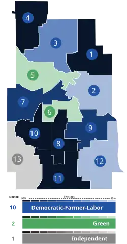 Members were elected from single-member districts. Municipal elections in Minnesota are officially nonpartisan, although candidates were able to identify with a political party on the ballot.[2]