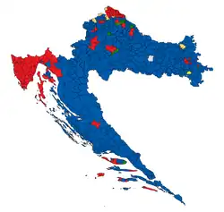 Results of the election based on the majority of votes in each municipality of Croatia