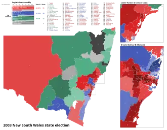 The 2003 New South Wales state election was held on Saturday 22 March 2003. All seats in the Legislative Assembly and half the seats in the Legislative Council were up for election. The Labor Party led by Bob Carr won a third four-year term against the Liberal–National Coalition led by John Brogden.