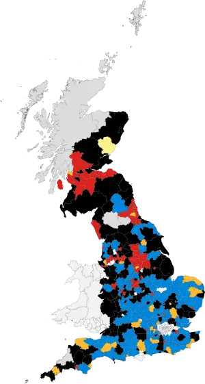 The Labour party lost a considerable 833 seats, losing control of councils such as Birmingham and Coventry, both of which the party had controlled for 20 years.