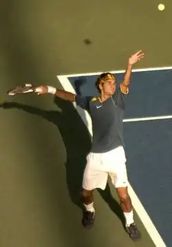 Federer at the 2005 US Open tournament.