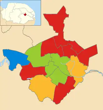 ![]() Map showing the 2006 local election results in Norwich. | |||||||||||||||||||||||||||||||||||||||||||||||||||||||||||