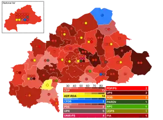 Parliamentary elections were held in Burkina Faso on 6 May 2007.[1] The result was a victory for the ruling Congress for Democracy and Progress (CDP), which won 73 of the 111 seats in the National Assembly.