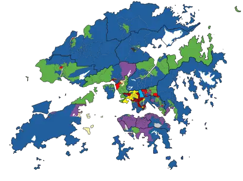 - ^ Although Wong Kwok Hing ran under the FTU banner in the elections, he is also a member of the DAB.