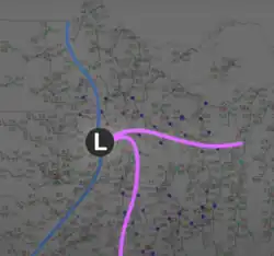 Past New Hartford, the tornado weakened dramatically and passed just north of Waterloo and Cedar Falls, shrinking to about 1⁄4 mile (400 m) in width as it continued to impact rural areas. Damage along this section of the path was mostly minor, though a few farms sustained EF2 damage. Intense cycloidal marks were again noted in farm fields in this area.[1][2] As the tornado approached Dunkerton, it turned to the east-northeast, missing the town and growing up to 1.2 miles (1.9 km) wide. Some re-intensification occurred in this area, as consistent high-end EF2 damage was noted at multiple farms. Numerous hog containment buildings were destroyed, and a few homes that were impacted sustained some collapse of exterior walls. Mud and corn stubble was picked up from farm fields near Dunkerton and plastered thickly against fences, power poles, and houses. Shortly before reaching Fairbank, the tornado abruptly dissipated.[1][2]