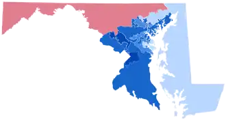 The district mostly consists of the larger part of Montgomery County, but also includes a small portion of Prince George's County, and has been represented by Democrat Chris Van Hollen since 2003. Van Hollen has achieved national prominence as head of the Democratic Congressional Campaign Committee.