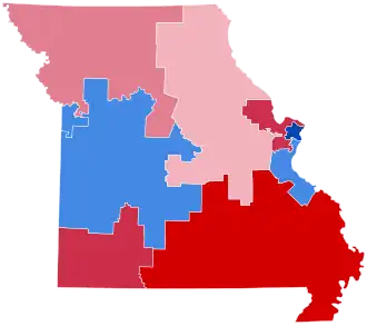 Missouri was the only state in which the party that won the state's popular vote did not win a majority of seats in 2008. It was also the last time the Democrats won the House popular vote in Missouri.