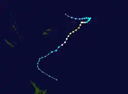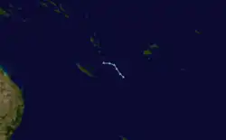 During March 30, RSMC Nadi reported that a depression had developed, along a trough of low pressure about 450 km (280 mi) to the southeast of Port Vila, Vanuatu.[29][30] During that day the system moved southeastwards before it was designated as Tropical Depression 15F during the next day.[31]