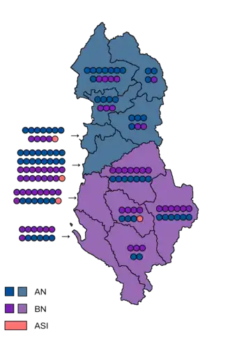All 140 seats in the Parliament of Albania 71 seats needed for a majority | ||||||||||||||||||||||||||||||||||||||||||||||||||||||||||||||||||