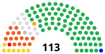 The turnout for the elections was 51.27% of the six million registered voters.[18] According to official results announced by CENI President Moumouni Hamidou on 24 October the governing MNSD won the elections by taking 76 of 113 seats in the National Assembly.[19] The MNSD had held 47 seats in the previous assembly.[18] Five parties considered allied to the MNSD won 25 seats: 15 for the Social Democratic Rally (RSD), seven for the Rally for Democracy and Progress (RDP), one for the Rally of Nigerien Patriots (a party founded in June 2009 by a former cabinet minister),[20] one for the Party of the Masses for Labour,[21] one for the Union of Independent Nigeriens (Union des Nigériens Indépendants) and one for the Nigerien Self-Management Party.[18] The RSD increased its number of seats by eight from the previous elections in 2004, whilst the RDP gained an extra seat.[18] Eleven independent candidates won the remaining seats, marking first time that independents have won seats in the assembly.[19] The Constitutional Court had 15 days to validate the elections from the date of the announcement of the results.[18]