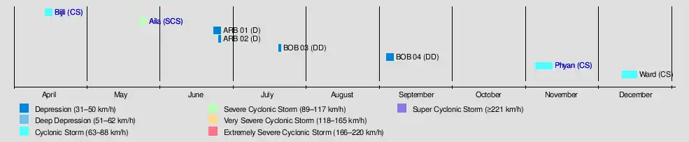 Phyan November 9–12 Cyclonic storm 85 km/h (55 mph) 988 hPa (29.18 inHg) India $300 million 20