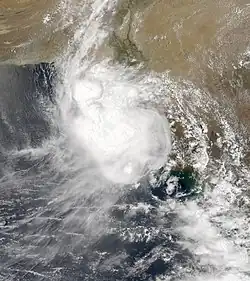 Cyclonic Storm Phyan developed as a tropical disturbance to the southwest of Colombo in Sri Lanka late on November 4. Over the next couple of days the disturbance gradually developed before weakening as it made landfall on Southern India on November 7. After the disturbance had emerged into the Arabian Sea late on November 8 it rapidly became more marked with the India Meteorological Department (IMD) reporting early on November 9 that the disturbance had intensified into a Depression and designated it as Depression ARB 03 whilst the Joint Typhoon Warning Center (JTWC) issued a Tropical Cyclone Formation Alert. Later that day the JTWC designated the system as Cyclone 04A. During the next day as the Depression turned towards the northeast, the IMD reported that it had intensified into a Cyclonic Storm and named it Phyan. Chandwad in Maharashtra recorded 240 mm of rainfall in 48 hours between 11 and 12 November. The maximum winds of 68 km/h were reported in Pune at the time of landfall. However the coastal areas recorded 75 km/h winds. Seven persons died and about 44 fishermen were missing due to the cyclone.[14]