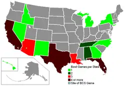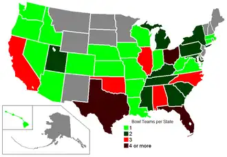 Number of bowl teams per state.