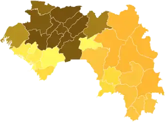 A big turnout was reported for the second round.[35] Early results (from counting in the districts) for the second round indicated a close race,[36] with final results due when all ballots were brought to Conakry for counting.[37] CENI announced the preliminary results on the evening of 15 November, with Condé the winner with 52.52% of the vote on a 67.87% turnout.[5][6] Earlier in the day, both candidates claimed victory, with Diallo saying that he would not accept the CENI's provisional results until his complaints of election irregularities had been investigated.[33] Voting along ethnic lines had been expected to hurt Diallo.[37]