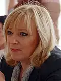 An agreement on the distribution of ministries was reached on 28 June 2010.[14] Radičová was then sworn in as PM on 8 July 2010,[15] after her coalition (comprising SDKU, KDH, SaS and Most-Hid[16]) secured a majority of 79 seats in the 150-seat parliament and Fico and his cabinet tendered their resignations. The new government pledged to cut state spending and the budget deficit and to attract more foreign investment, while steering clear of tax rises. "We are ready to take responsibility over the country at a time when it is coping with the impact of a deep economic crisis and the irresponsible decisions of our political predecessors."[17] They have also sought, through Most-Hid, to rebuild links with Hungary that were badly damaged by the adoption of contentious language and citizenship laws.[18]