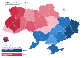 Presidential elections were held in Ukraine on 17 January 2010. As no candidate received a majority of the vote, a run-off election was held between Prime Minister Yulia Tymoshenko and opposition leader Viktor Yanukovych on 7 February.
