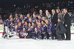 The United States were the two-time defending champions and successfully defended their title, capturing their third straight gold medal by defeating Canada 3–2 in overtime on a goal by Hilary Knight.[3] IIHF council member Monique Scheier-Schneider presided over the events.[4]