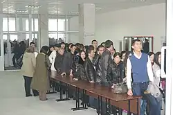 University students from the Al-Farabi Kazakh National University in Almaty have reportedly being pressured to vote or face expulsion, thus being seen queueing at early morning on Sunday in a drizzling weather.[18]