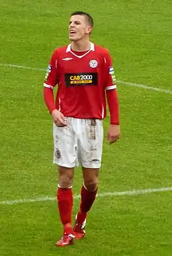 On 1 November, after lengthy negotiations with Carlisle United the club agreed to extend the loan of striker Paddy Madden until January, the Irish forward having scored five goals in his five appearances in the first month of his loan deal.[95] Gary Johnson also did not rule out a permanent deal for the Carlisle striker suggesting it was part of the discussions to extend his loan deal.[96] On 3 November, Yeovil's FA Cup ended with a first round away defeat at Preston North End. The 3–0 lacklustre defeat was not helped by the sending off of Ed Upson, who coincidentally was sent off in the corresponding league fixture in September.[97] Yeovil's three game winning run in the league came to an abrupt end with a 3–1 home defeat against high flying Stevenage despite a further goal by inform loan striker Paddy Madden early in the first half.[98] The club though got back to winning ways the following on 10 November, courtesy of a goal from Bristol City loanee Joe Edwards after seven minutes to give the side a 1–0 win over bottom of the league side Hartlepool United.[99] The same day youth team goalkeeper Matt Cafer joined Sherborne Town on a work-experience loan deal.[100] Luke Ayling's performance in the victory over Hartlepool United led to his inclusion in the Football League Team of the Week.[101] Yeovil's inconsistent form continued throughout November with a 4–1 defeat at the hands of Swindon Town, including a goal from former striker Andy Williams,[102] followed, on 20 November, by an impressive 1–0 away win against Cralwey Town.[103] The conclusion of the loan transfer window saw Yeovil extend the loan of defender Dan Burn until January,[104] and bring in Watford defender Dale Bennett on loan also until the new year.[105] Meanwhile Daniel Johnson returned to Aston Villa,[106] and defender Curtis Haynes-Brown was sent out on loan again this time to Conference National side Cambridge United,[107] it was also announced the club had taken former Canadian international winger Jaime Peters on trial.[106] The team ended the month in 12th place following a 3–1 home defeat at the hands of Carlisle United.[108]