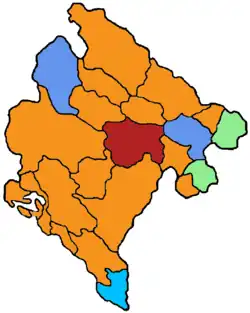 At elections in the rest of municipalities ruling DPS stay in power in most municipalities. It held an absolute majority in Bar, Žabljak, Budva and Bijelo Polje, formed ruling coalitions with SDP in Danilovgrad, Pljevlja, Andrijevica, Šavnik, Tivat, Cetinje, Kotor and Mojkovac and with Bosniak Party in Plav, Rožaje, Petnjica and Gusinje, and in Herceg Novi, where DPS-SDP coalition formed majority with local parties.[5] The opposition won only in Plužine, where the local SNP won absolute power, in Berane, where the opposition formed a joint coalition at the local level and in Kolašin where SDP form an post-election coalition with opposition to form local government. While in Ulcinj, the local government formed the Albanian minority parties.