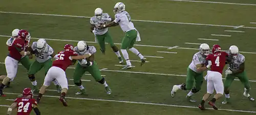 ![]() Oregon on offense in their Week 1 game against the FCS team South Dakota | |