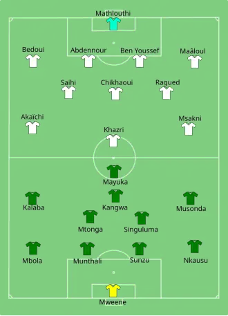 Zambia took the lead in the 60th minute, when Emmanuel Mayuka scored home from Rainford Kalaba's lofted pass. Tunisia equalized ten minutes later after Syam Ben Youssef flicked a corner to Ahmed Akaïchi to score from close range. They completed the comeback in the 89th minute, as Yassine Chikhaoui headed in Youssef Msakni's cross.[8][9]
