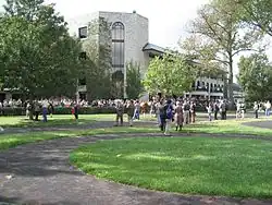 2015 was the first year that the Breeders' Cup had ever been held at Keeneland. A track built in 1935 as "a model race track, to perpetuate racing in the proper manner", it had never handled crowds of the size anticipated for the Breeders' Cup and thousands of temporary seats had to be added without removing trees or otherwise changing the classic appearance of the facility.[4] But with a 1,100 acres (450 ha) facility, there was room to be flexibile. Track management decided to only offer 28,000 reserved seats and further required that all tickets for both reserved and general admission be purchased in advance. They created seating in buildings adjacent to the existing grandstands and set up large tents and other temporary facilities, plus two tailgate areas with big-screen televisions for additional spectators. Keeneland's organizers estimated they would be able to host about 45,000 people.[5]