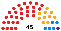 Party Seats Gains Losses Net gain/loss Seats % Votes % Votes +/−