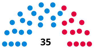 Results of the 2015 North Warwickshire Borough council election. Conservatives in blue and Labour in red.