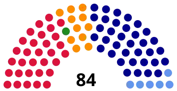 The 84 members of the Legislative Assembly are elected by open list proportional representation from 14 multi-member constituencies based on the departments, with seats allocated using the largest remainder method.