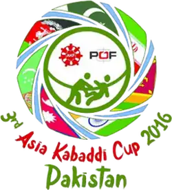 2016 Asia Kabaddi Cup was the third season of the Asia Kabaddi Cup hosted by Pakistan[1] which commenced from May 2, 2016, in Pakistan Ordnance Factory Sports Complex, Wah Cantt.[2] The final of this event was played on May 6.[3] The event was broadcast live on PTV Sports.