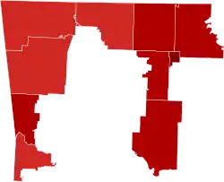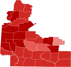 Results by county Crawford: 50–60% 60–70% 70–80% 80–90% |