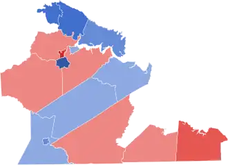 | Democratic Party | 11 | 1,859,426 | 49.17% | 4 | 36.36% | ||