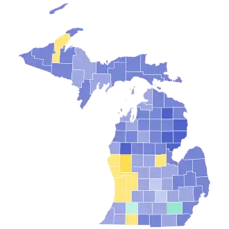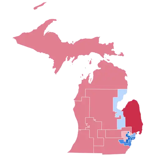 Michigan's largest county, Wayne County, home to Detroit, voted for Clinton by 37 points. She also managed to hold on to suburban Oakland County, the state's second-largest county, where residents tend to be more diverse and more white-collar, where instead third-party candidates gained votes, whilst Trump flipped the state's third largest county, Macomb County, which is home to more socially conservative but economically populist white blue-collar workers. As of the 2024 U.S. presidential election, this is the last time in which Kent County and Leelanau County voted for the Republican candidate, and the only time since 1976 that the Democratic presidential nominee won the nationwide popular vote without winning Michigan.