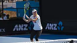 ![]() Caroline Wozniacki practicing at the 2018 Australian Open | |