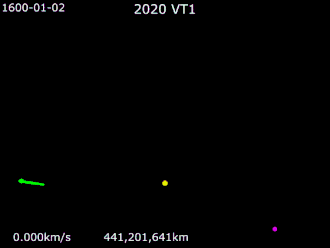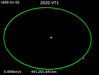 - ^ "MPEC 2020-V75 : 2020 VT1". Minor Planet Electronic Circular. Minor Planet Center. 12 November 2020. Retrieved 7 February 2021.