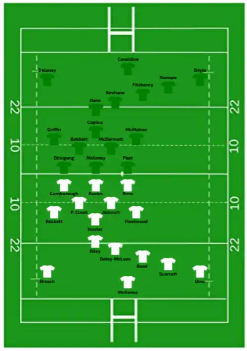 | 13:00 GMT (UTC±00:00) | Try: Moloney 10' m Naoupu 15' m Parsons 67' m Pen: Murphy (1/1) 5' |