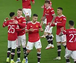 ![]() Manchester United players during a UEFA Champions League match against Villarreal CF in September 2021 | ||||