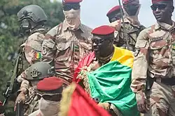 The move had been controversial and sparked massive protests before and after the referendum, which were brutally repressed, causing more than thirty deaths between October 2019 and March 2020.[2] After the constitutional amendment was approved, Condé won the 2020 presidential election and thus a third term in office. This was again followed by protests against the President, with opposition candidates accusing Condé of ballot stuffing.[6][10] Protests continued throughout the year, and were harshly repressed by security forces, claiming at least 12 civilian lives, including two children in Conakry.[11] France distanced itself from Condé following the 2020 election, leaving China, Egypt, Russia and Turkey foremost among the few powerful countries which continued to back the President.[12][13][14][15] This happened as fellow West African and Central African countries have experienced democratic backsliding: Chad went through its own military takeover in April 2021, Mali had two such overthrows within a year (in August 2020 and May 2021), while Ivory Coast elected a president for a third term amid considerable controversy and allegations of fraud.[12]