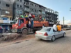 Guineans in support of the coup d'état on a truck, 5 September 2021