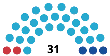 The City Mäslihat councillors are directly elected through proportional representation for a 5-year term and must win the 7% electoral threshold to win any seats. If only one party manages to pass the threshold, then the other party with the second most received votes is awarded enough seats to have representations in the City Mäslihat.[4]