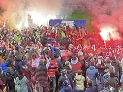 Manager Ian Morris announced his departure from the managers position on 25 October 2021, effective the end of the season.[16] The final game of the season saw UCD visit Tolka Park on 29 October 2021. Despite early pressure from Shelbourne, UCD went ahead through Evan Caffrey early in the second half. Ex-UCD striker Yoyo Mahdy replaced Brian McManus late on and scored an equaliser in the 88th minute to preserve Shels unbeaten home record for the 2021 season.[17] Following the final whistle fans were invited onto the pitch to see the team presented with the First Division Trophy.