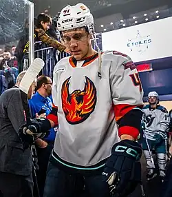 The Firebirds would continue their winning streak with Max McCormick scoring the overtime winner against the Bakersfield Condors on January 13.[39] In a 5–2 win to the Tucson Roadrunners on January 16 would see Jesper Froden record his second straight multi-goal game.[40] McCormick would get a hat-trick including another overtime winner in a 5–4 overtime win to the Reign on January 21.[41] Lind, Froden, and Cameron Hughes would score in the third period of a 4–2 comeback victory over the San Diego Gulls the next day.[42] On January 26, Tye Kartye would score the overtime winner in a 3–2 win over the Iowa Wild.[43] The Firebirds' winning streak would come to an end on January 28, in a 5–2 loss to the Wild. The Firebirds couldn't find their offensive touch, as players like McCormick and John Hayden were recalled by Seattle, and Poturalski was sidelined with an injury.[44]