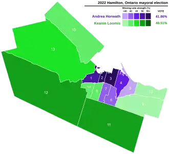- ^ Cain, Patrick (October 17, 2022). "Andrea Horwath leads in Hamilton's mayoral race". QP Briefing. Queen's Park Briefing. Archived from the original on October 17, 2022. Retrieved October 17, 2022.