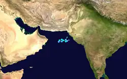On 14 December, the remnants of Cyclone Mandous regenerated into a depression in the Arabian Sea, and it was called ARB 03.[131] The Joint Typhoon Warning Center dubbed it as Invest 97A. Although forecasted to quickly degenerate into a remnant low, ARB 03 intensified into a Deep Depression, according to the Indian Meteorological Department,[132] and the JTWC dubbed it as Cyclone 07A. After reaching peak intensity, the Low-Level Circulation detached from the associated convection as dry air and wind shear increased, starting a weakening trend. It weakened into a low pressure area on 12:00 UTC of 17 December.