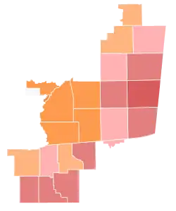 Kelly: 50–60% 60–70% 70–80% 80–90% >90% Black: 50–60% 60–70% 70–80% 80–90% >90% Tie: 50% No votes | |||||||||||||||||